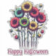 Flores caprichosas con dientes que dicen Feliz Halloween
