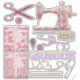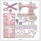 Un collage de pegatinas con temas de costura. Mecanización, tela, tijeras, hilo, botones y más. Perfecto para la elaboración de artesanías, la reserva de recortes y los regalos.