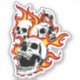 Esta imagen intensa presenta múltiples cráneos envueltos en llamas. Los cráneos se representan en un estilo detallado y gráfico, con sus ojivas vacías y bocas abiertas que transmiten un sentido de amenaza. Las llamas que rodean los cráneos son representadas en un naranja vibrante y amarillo, creando un efecto visual dramático y poderoso. La composición general es caótica y enérgica, lo que sugiere una sensación de peligro y destrucción.