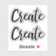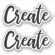 Pegatinas que presentan la palabra "crear" en una letra de guión elegante