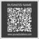 apariencia moderna simplificadanombre de su empresamaterial de marketing profesional fácilbien para fines de autopromocióndiseño minimalista muy simplecódigo qr básico y simplistatexto arriba más abajosolo blanco sobre fondo negroanunciarse al público