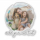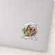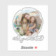 Create your own photo sticker. This custom cut vinyl sticker features one of your favorite pictures in a circle shaped watercolor brush stroke frame and personalized text for any occasion.