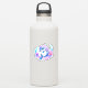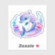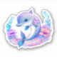 Contacte pegatina con un ilustracion adorable. Un delfín azul y púrpura rodeado de plantas submarinas de colores bonitos.