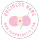 Crochet Crocheting Personalizado del sitio web Business Name Stickers Labels incluye un gancho de crochet e hilo rosa con el texto de su personalizado, como el nombre de negocio y el sitio web de la empresa en un guión moderno de tipografía con un fondo blanco. Personalizado editando el texto en los cuadros de texto proporcionados. Perfecto para pequeñas empresas, crochet, sellos para sobres, regalos y favores. Diseñado por ©2024 Evco Studio www.zazzle.com/store/evcostudio
