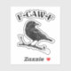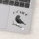 Se trata de un ilustracion monocromático de elaboración profesional, con un cuervo encaramado sobre una rama arbórea, representado con una textura distintiva de medio tono para evocar una estética vintage. El texto audaz y estilizado "F-CAW-F", situado en una posición prominente sobre el pájaro, ofrece un giro humorístico que complementa el ambiente gótico y potencialmente espeluznante o de Halloween del cuervo. La composición general combina elementos de estilo tatuado oscuro y vintage con un diseño retro gráfico.