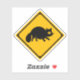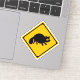 ¡Cuidado con el tanuki! Este divertido pegatina está basado en un letrero japonés de la carretera, advirtiendo a los conductores que cuiden de los famosos perros mapaches que cruzan la calle.