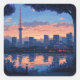 PEGATINA CUADRADA 東京の夕暮れの風景 ステッカー
