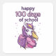 Un unicornio lindo vistiendo una mochila y sosteniendo un gran bolígrafo con la cita "Feliz 100 días de colegio". Feliz día 100 de la escuela o feliz día 100 de la guardería.