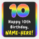 Este alegre y vibrante diseño pegatina cuadrado de cumpleaños presenta el número "10" con un vibrante patrón de gradiente inspirado en el espectro arcoiris, junto con el mensaje "Feliz décimo cumpleaños", y un nombre de destinatario de personalizable. Pegatinas como estos podrían ser usados para celebrar el décimo cumpleaños de alguien. [~Z0000630]