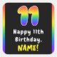 Este diseño optimista y divertido de pegatina cuadrado de cumpleaños presenta el número "11" que tiene un patrón de gradiente inspirado en el espectro de arcoiris multicolor, junto con el mensaje "Feliz cumpleaños número 11", y un nombre de destinatario de personalizable. Emocionantes pegatinas con temas de cumpleaños como estos podrían ser distribuidos o usados en un fiesta en celebración del undécimo cumpleaños de alguien, o quizás usados al preparar invitaciones o regalos para un evento de este tipo. [~Z0000630]