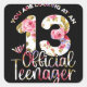 Pegatina Cuadrada 13.ª Chica de cumpleaños 13 años adolescente