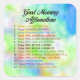 14 Buenos días afirmaciones para el pensamiento positivo. Este diseño lo trae la tienda Zazzle "Today's Affirmations" que presenta una variedad de productos para los interesados en los temas del pensamiento positivo, la autoayuda, las afirmaciones, el yoga, las leyes universales, las leyes de atracción, la mente sobre la materia y generalmente la vida positiva y de celebración. Las afirmaciones son frases breves y rápidas que tienen un impacto positivo en usted. Las afirmaciones son parte integrante del pensamiento positivo y el empoderamiento y le permitirán pensar de manera más positiva.
