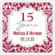 15º Aniversario Boda Ruby Red Damask A04A. Este diseño con su diseño clásico de damasco ofrece una elegante elección para una celebración del aniversario de un boda. Personaliza con los nombres de la pareja y la fecha del matrimonio.