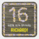 Este divertido y rústico diseño de pegatina cuadrado inspirado en la botánica, con temática de cumpleaños, incluye el mensaje "Feliz cumpleaños número 16" y un nombre de destinatario del personalizable. El gran número "16" y el borde tienen iconos florales. El fondo presenta un patrón de imitación/imitación de grano de madera. Pegatinas como estos podrían ser usados para celebrar los 16 años de alguien. [~Z0000654]