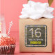 Pegatina Cuadrada 16º cumpleaños: número de flores, aspecto de mader
