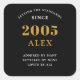Pegatina Cuadrada 21st Birthday Name 2005 Black Gold Elegant Chic