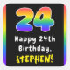 Este diseño vibrante y llamativo de pegatina cuadrado de cumpleaños presenta un gran número de "24" que tienen un patrón de gradiente inspirado en el espectro de arcoiris multicolor, junto con el mensaje "Feliz cumpleaños número 24", y un nombre editable del destinatario. Pegatinas con temas de cumpleaños como estos pueden ser usados o distribuidos en un fiesta que celebra el 24 cumpleaños de alguien, o tal vez usados al preparar regalos o invitaciones para un evento de este tipo. [~Z0000630]