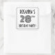 Este elegante diseño de pegatina cuadrado para fiestas de 28 años presenta un nombre personalizado, un intrincado estilo Art Déco inspirado en el número "28", el mensaje "¡PARTIDO DE CUMPLEAÑOS!" y un borde multilínea. Pegatinas lujosos con temática de cumpleaños como estos podrían ser usados o distribuidos en una fiesta de cumpleaños para alguien que está celebrando su 28º cumpleaños, o quizás usados al preparar regalos o invitaciones para tal evento. [~Z0000618]