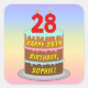 Pegatina Cuadrada 28 Aniversario: Torta divertida y velas + nombre p