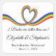 Haz que tu despedida de soltera o fin de semana sea aún más especial con nuestras pegatinas de Despedida de Soltera Lesbiana Corazón Arcoíris. Diseñadas para agregar un toque de orgullo y positividad a tu celebración, presentan un gráfico vibrante de corazón arcoíris LGBTQ, perfecto para celebrar el amor y la amistad. Personaliza con los nombres y detalles de ambas novias para un toque personal.