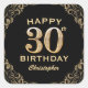 Pegatina Cuadrada 30.º marco Purpurina negro y oro Fiesta de cumplea