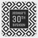 Pegatina Cuadrada 30.º nombre de cumpleaños geométrico blanco negro