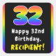 Este alegre y alegre diseño de pegatina cuadrado con temática de cumpleaños presenta el número "32" que tiene un vibrante patrón de gradiente inspirado en el espectro de colores del arcoiris, junto con el mensaje "Feliz cumpleaños número 32", y un nombre editable para el destinatario. Pegatinas como estos podrían ser distribuidos o usados en una fiesta de cumpleaños realizada para alguien que está celebrando su 32 cumpleaños, o tal vez usados al preparar invitaciones o envolver regalos para un evento de este tipo. [~Z0000630]