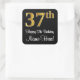 Este elegante, elegante y lujoso diseño pegatina cuadrado de cumpleaños presenta un gran número ordinal "37th" con un patrón de gradiente inspirado en el oro imitación/faux, además del mensaje de bienvenida de cumpleaños "Feliz cumpleaños número 37", y un nombre personalizado con un tipo de letra estilo script. También tiene un fondo de color negro. Este tipo de pegatinas estilizados con temática de cumpleaños pueden ser usados cuando se envuelve un regalo o regalo para alguien que está celebrando su 37 cumpleaños, o tal vez se los entregue a los invitados en una celebración de cumpleaños o fiesta. [~Z0000517]