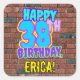 Este divertido diseño de pegatina cuadrado de cumpleaños incluye el mensaje "FELIZ CUMPLEAÑOS 38", con un colorido, vibrante, graffiti y arte urbano inspirado en el arte callejero, además de un nombre de receptor de personalizable. El fondo está decorado con un patrón inspirado en el aspecto de una pared de ladrillo. Pegatinas vibrantes, divertidos y personalizados como este pueden ser dados como regalo de cumpleaños, o usados al envolver regalos/regalos, o quizás usados como decoración de fiesta de cumpleaños cuando se celebra el cumpleaños 38 de alguien. [~Z0000535]