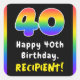 Pegatina Cuadrada 40.º cumpleaños: Espectro arcoiris # 40, nombre pe