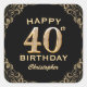 Pegatina Cuadrada 40.º marco Purpurina negro y oro Fiesta de cumplea