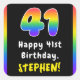 Este vibrante y alegre diseño de pegatina cuadrado con temática de cumpleaños presenta un gran número de "41" con un colorido patrón de gradiente inspirado en el espectro de arcoiris, junto con el mensaje "Feliz cumpleaños 41", y un nombre editable del destinatario. Pegatinas como estos podrían ser distribuidos o usados en una fiesta de cumpleaños realizada para alguien que está celebrando su cuarenta primer cumpleaños, o tal vez usados al preparar regalos/regalos o invitaciones para tal evento. [~Z0000630]