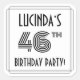 Este elegante diseño de pegatinas cuadrados de cuarenta y seis años, inspirado en el estilo de los años 20-30, presenta un nombre de personalizable, un intrincado estilo Art Déco inspirado en el número "46", el mensaje "¡PARTIDO DE CUMPLEAÑOS!" y un patrón fronterizo compuesto de líneas. Pegatinas con temas de cumpleaños como estos pueden ser usados o distribuidos en un fiesta que celebra el cuarenta y seis cumpleaños de alguien, o tal vez usados para envolver regalos/regalos o preparar invitaciones para un evento de este tipo. [~Z0000618]