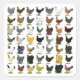 ¡Cuarenta y nueve gallinas con una variedad de razas y colores parecen felices en todo, desde camisetas y posters hasta cartas y delantales!