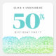 PEGATINA CUADRADA 50.º CUMPLEAÑOS INVITACIÓN DE LACTANCIA AZUL