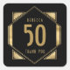 Pegatina Cuadrada 50.º natalicio Art Deco Nombre Gracias Oro Negro