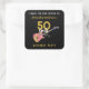 Pegatina Cuadrada 50 Rocks Guitarra Rosa 50 cumpleaños fiesta gracia