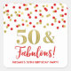 50 y fabulosa fiesta de cumpleaños favorecen a los pegatinas con confeti rojo y oro.
