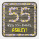 Pegatina Cuadrada 55º cumpleaños: número de flores, aspecto de mader