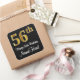 Este lujoso, elegante y sofisticado diseño de pegatina cuadrado con temática de cumpleaños cuenta con un gran número ordinal "56th" con un aspecto imitación/falso de inspiración dorada, además del mensaje de bienvenida de cumpleaños "Feliz cumpleaños número 56", y un nombre personalizado con un tipo de letra estilo script. El fondo es negro de color. Pegatinas lujosos como este pueden ser usados cuando se envuelven regalos a alguien en celebración de sus 56 años, o tal vez se les puede dar a los invitados en una celebración de cumpleaños o fiesta. [~Z0000517]
