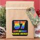 Este alegre, colorido y divertido diseño pegatina de cumpleaños presenta un gran número "57" y el mensaje "FELIZ CUMPLEAÑOS", ambos con un colorante inspirado en el gradiente del espectro del arcoiris, junto con un nombre personalizado amarillo en negrita. El fondo es negro de color. Pegatinas divertidos como este podrían ser usados cuando se le dan regalos a alguien en celebración de su cincuenta cumpleaños, o tal vez se les pueda dar a los invitados en una fiesta de cumpleaños o celebración. [~Z0000480]