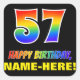 Pegatina Cuadrada 57º cumpleaños: audaz, divertido, simple, arcoiris