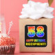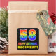 Este alegre, divertido y colorido diseño de pegatina con temática de cumpleaños presenta un gran número "58" y el mensaje "FELIZ CUMPLEAÑOS", ambos coloreados con un patrón inspirado en el gradiente del espectro del arcoiris, junto con un nombre editable amarillo en negrita. El fondo es negro de color. Pegatinas divertidos como este podrían ser usados cuando se le dan regalos a alguien en celebración de su cumpleaños número 58, o tal vez se les pueda dar a los invitados en una fiesta de cumpleaños o celebración. [~Z0000480]