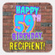 Este divertido diseño de pegatina cuadrado de cumpleaños presenta el mensaje "FELIZ 59º CUMPLEAÑOS", con una apariencia vibrante, colorida, inspirada en el graffiti y el arte urbano callejero, junto con un nombre de destinatario personalizado. El fondo está inspirado en una pared de ladrillo. Pegatinas divertidos y personalizados como este pueden ser dados como regalo de cumpleaños, o usados al envolver regalos, o quizás usados como decoración de fiestas de cumpleaños cuando se celebra el cincuenta y noveno cumpleaños de alguien. [~Z0000535]