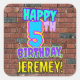 Este divertido diseño de pegatina cuadrado de cumpleaños presenta el mensaje "FELIZ 5 CUMPLEAÑOS", con un colorido, vibrante, grafiti y arte urbano inspirado en el arte callejero, además de un nombre de destinatario del personalizable. El fondo está inspirado en una pared de ladrillo. Pegatinas divertidos, vibrantes y personalizados como este pueden ser dados como regalo de cumpleaños, o usados al envolver regalos, o quizás usados como decoraciones de fiestas de cumpleaños cuando se celebra el quinto cumpleaños de alguien. [~Z0000535]