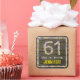 Pegatina Cuadrada 61 Aniversario: Número Floral, Aspecto Faux Wood,