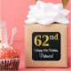 Este sofisticado, elegante y elegante diseño de pegatina cuadrado con temática de cumpleaños cuenta con un gran número ordinal "62nd" con un aspecto falso/imitación de inspiración dorada, además del mensaje de bienvenida de cumpleaños "Feliz cumpleaños número 62", y un nombre personalizado con un tipo de letra estilo script. El fondo es negro de color. Sofisticados pegatinas como este podrían ser usados cuando se le dan regalos a alguien para celebrar su 62 cumpleaños, o tal vez se les pueda dar a los invitados en una celebración de cumpleaños o fiesta. [~Z0000517]