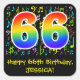 Este divertido, vibrante y colorido diseño de pegatina con temática de cumpleaños presenta un gran número "66" con un diseño inspirado en el gradiente del espectro arcoiris. También incluye el mensaje "Feliz cumpleaños número 66", y un nombre de personalizable. Parte del fondo tiene un patrón de varias notas musicales y símbolos con una variedad de colores y tamaños. Pegatinas divertidos y editables de cumpleaños como este podrían ser usados como decoración de fiesta de cumpleaños, o tal vez como regalo de cumpleaños, o tal vez ser usados al envolver regalos de cumpleaños para celebrar los conciertos de un músico, un cantante, un compositor de canciones o el cumpleaños 66 de alguien más. [~Z0000423]