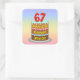 Pegatina Cuadrada 67º cumpleaños: Torta divertida y velas + nombre p