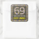 Pegatina Cuadrada 69º cumpleaños: número de flores, aspecto de mader